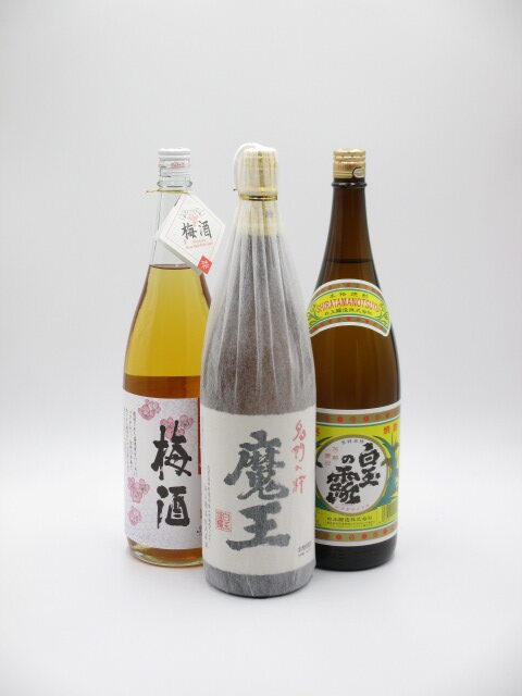 白玉醸造の3本セット販売です。魔王1800ml、白玉の露1800ml、彩煌の梅酒1800mlの3本セット販売です。